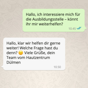 Du stattest uns einen Besuch ab und lernst unsere Praxis kennen. Wenn du in unser Team passt, freuen wir uns auf deinen Ausbildungbeginn!